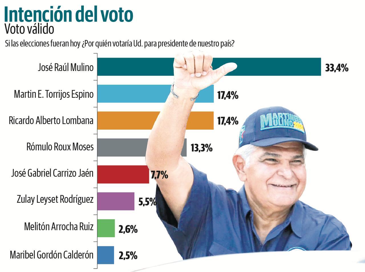 A escasos 5 días para las elecciones generales, Mulino obtuvo el 33.4% de respaldo de los encuestados.