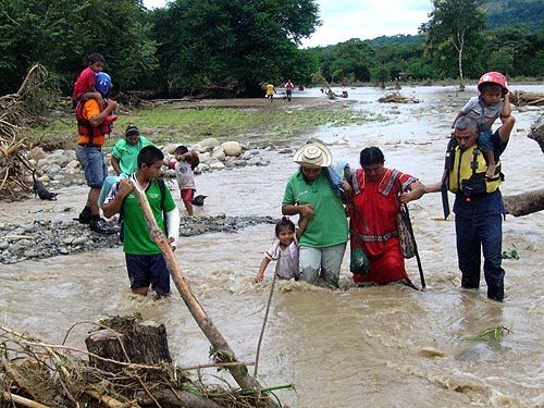 "El desbordamiento de los ríos, además de ocasionar pérdidas materiales, acabó con la vida de dos estudiantes de preescolar y dos de sexto grado", dijo Chávez.