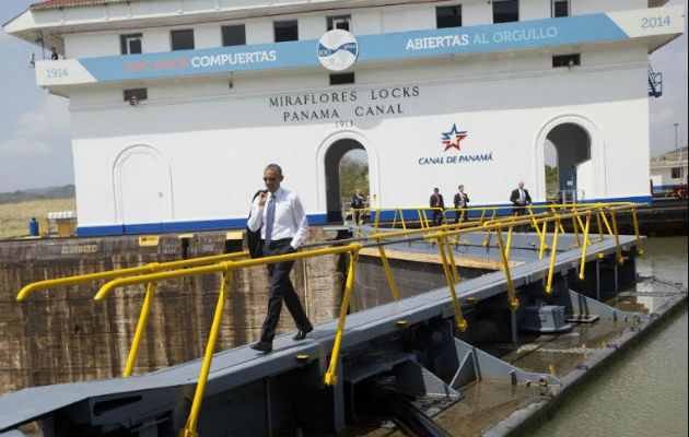 Bajo fuertes medidas de seguridad, el presidente de Estados Unidos Barack Obama llegó a las esclusas de Mirafloes abordo de su vehículo conocido como "La bestia" y realizó una visita a la ampliación del Canal de Panamá.