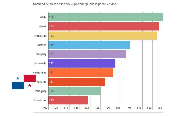 En un nuevo índice de los mejores pasaportes para viajar por el mundo sin visado, Panamá aparece en el octavo lugar en América Latina, con un total de 127 países que permiten entrada libre a panameños.