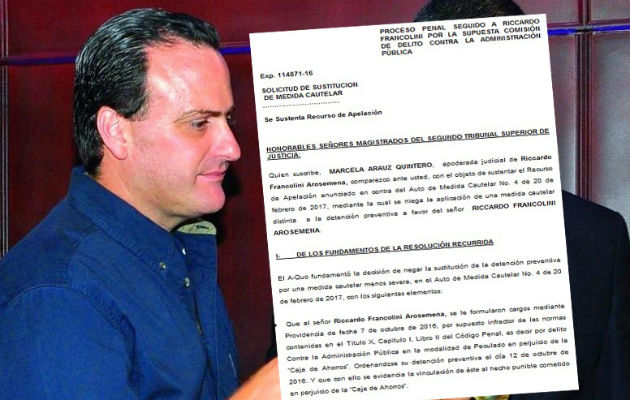 La abogada Maracela Arauz Quintero, apoderada judicial del presidente de NEXtv, Riccardo Francolini, sustentó la solicitud de “sustitución de medida cautelar” ante los magistrados del segundo tribunal superior de Justicia, dejando claro que a su defendido se le aplicó la medida cautelar más estricta en el ordenamiento legal panameño. Polémica detenciónArauz reiteró que a Riccardo Francolini se le mantiene bajo detención preventiva a pesar de que quedó demostrado que en ningún momento rehuyó a enfrentar el proceso penal en su contra por el presunto delito contra la administración pública. Además, deja claro que el presidente de NEXtv fue sometido a indagatoria, mientras se le negó de manera ilegal a su defensa tener acceso previo al expediente, que en ese momento tenía más de 10 tomos. También advierte que a Francolini se le violentaron principios fundamentales derechos humanos consagrados en la Convención Americana sobre Derechos Humanos. La abogada recalca algunos puntos como que "toda persona inculpada de delito tiene derecho a que se presuma su inocencia mientras no se establezca legalmente su culpabilidad". Así como "comunicación previa y detallada al inculpado de la acusación formulada y concesión del tiempo y los medios adecuados para la preparación de la defensa”, derechos que han sido violentados a Francolini. SolicitudEn consecuencia, y por las razones expuestas, el recurso legal solicitó “revocar la decisión” de medida cautelar (N.º 4 de fecha 20 de febrero de 2017). “Y en su lugar proceder a sustituir la medida de detención preventiva de Riccardo Francolini Arosemena, por otra medida cautelar menos grave, que le asegure su comparecencia al proceso a fin de que ejerza sus labores habituales y que le permitan el sostenimiento de su familia”.