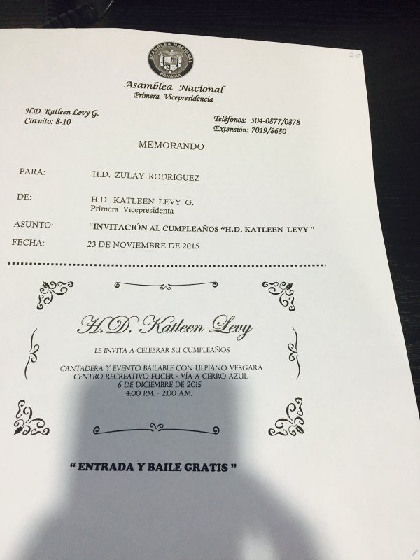 En la carta, que lleva sello o membrete de la Asamblea Nacional de Diputados (AN), Levy le hace una invitación a Zulay Rodríguez, para que asista a un centro recreativo donde se celebrará el cumpleaños de la primera.