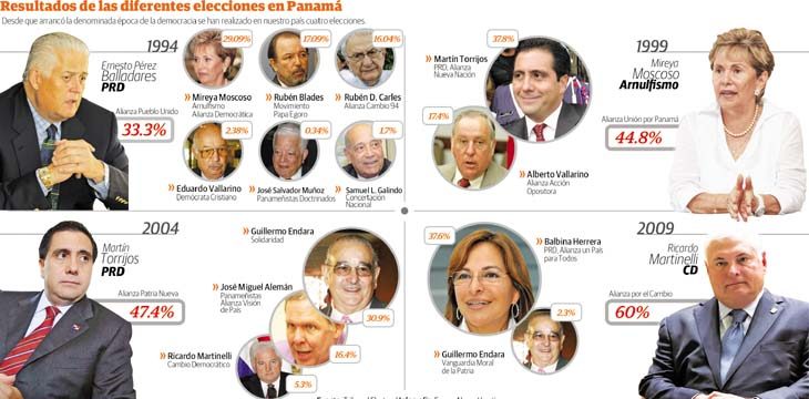 En los últimos 20 años, ha sido Pérez Balladares el presidente que menos votos ha sacado; contrario a esto, el presidente más votado ha sido Ricardo Martinelli, de Cambio Democrático (CD), que en 2009 sacó el 60% de los votos.