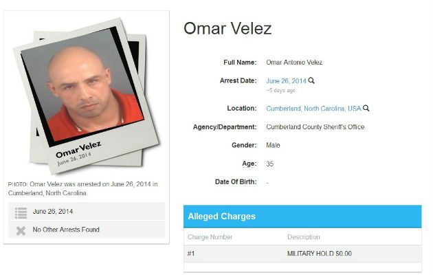 Omar Antonio Velez, de 35 años, fue arrestado en Cumberland, Carolina del Norte en Estados Unidos, y su ficha de arresto ya fue publicada en el portal ncopenreports.com.