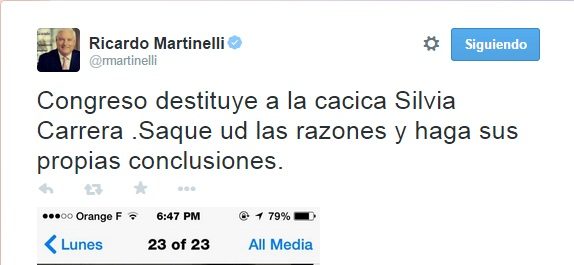 Reacciones en el twitter por separación del cargo de la cacica Carrera