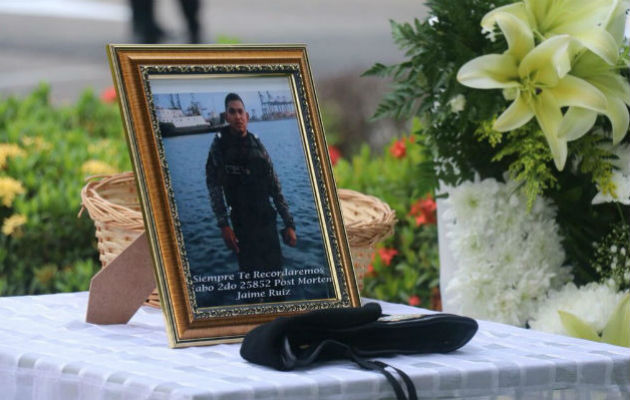 Con todos los honores, así despiden compañeros al cabo 2do. Post mortem Jaime Ruiz, quien perdiera la vida el pasado,16 de mayo en un accidente de tránsito en la provincia de Colón. Este lunes, miembros de la Policía Nacional, Servicio Nacional Aeronaval (Senan) y el Servicio Nacional de Fronteras (Senafront) participaron de la ceremonia que se realizó en la sede de la Policía Nacional en el corregimiento de Ancón. En el acto también estuvo presente el Presidente de la República, Juan Carlos Varela acompañado por el secretarios de Consejo de Seguridad, Rolando López y el ministro de Seguridad, Alexis Bethancourth. VEA TAMBIÉN: Policía y joven mueren en dos accidentes tránsito en Colón El cabo 2do. Post mortem Jaime Ruiz, de 24 años de edad perdió la vida cuando la moto en la que viaja junto a su compañero el sargento 2do. Luis Carlos Pimentel fue embestido por un vehículo tipo taxi. Ruiz oriundo de la provincia de Veraguas deja un niño en horfandad.