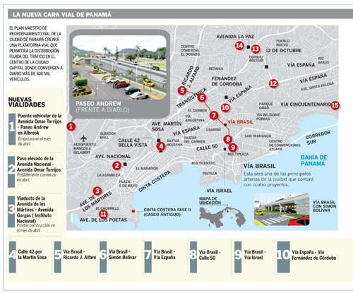 Además, el viaducto de la Avenida de los Mártires y la ampliación de la vía integradora de las barriadas de Tocumen se iniciarán, probablemente, en el mes de mayo.