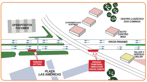 Explicó que para la realización de dichos trabajos será necesario mover temporalmente la parada ubicada en la Plaza Las Américas (donde se toman los buses con dirección hacia Chepo).