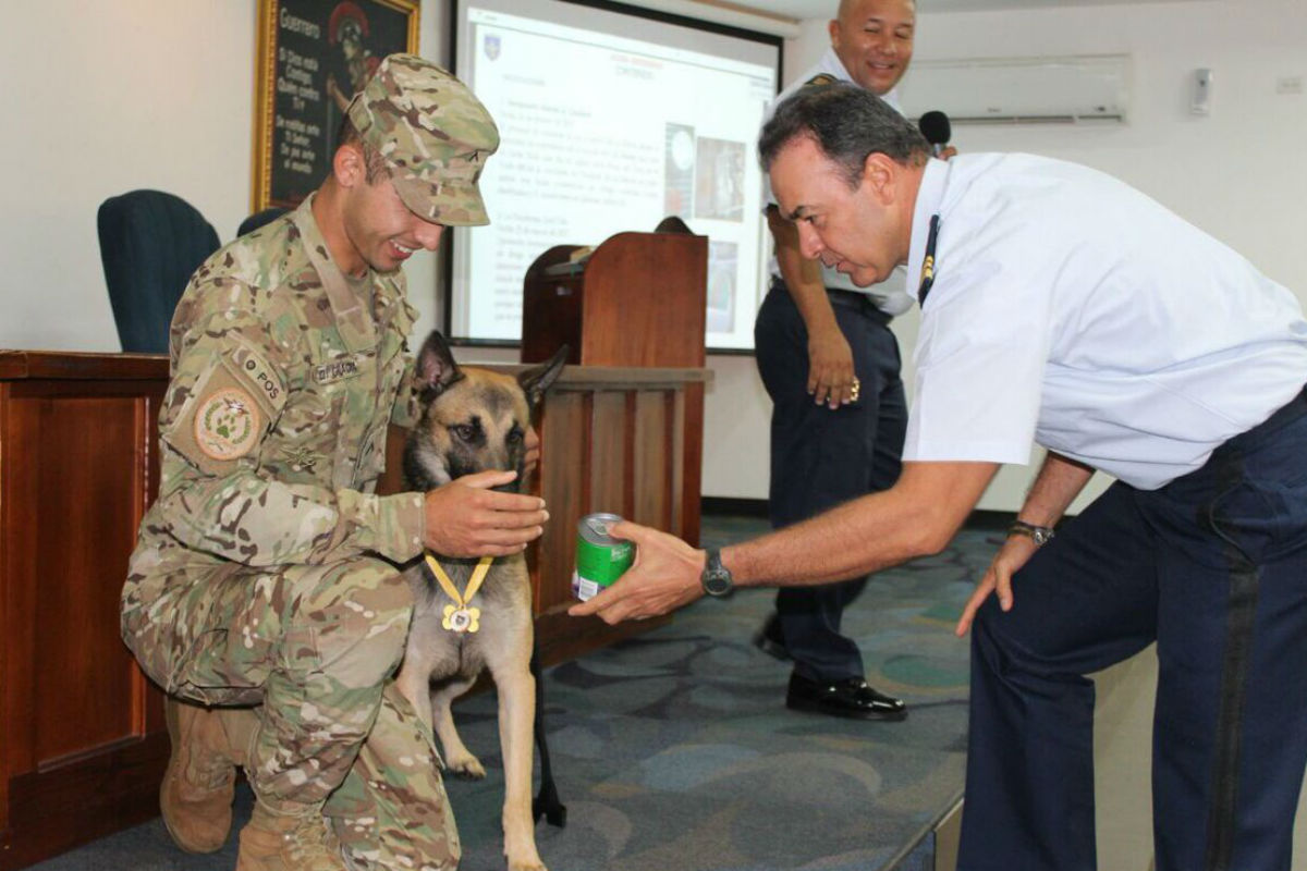 El perro estuvo en el operativo donde se halló 749 paquetes de cocaína y fueron decomisados junto con una lancha rápida en el sector este de la provincia de Panamá por el Senan.