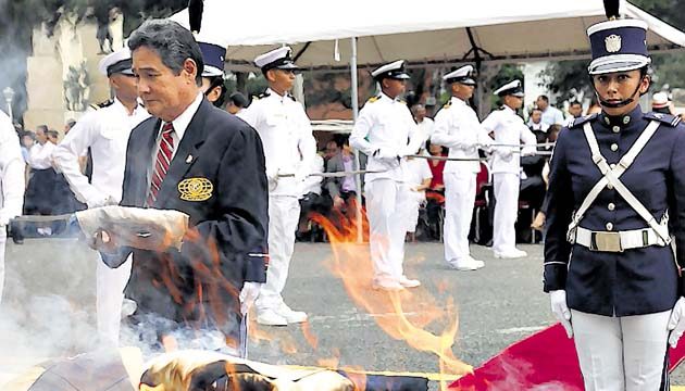 Las declaraciones de Pino Pinto se dieron durante el acto de cremación de 40 banderas en desuso por estar en malas condiciones, que se realizó al frente de la sede de la Gobernación.
