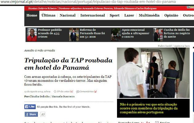 Medios internacionales aseguran que el pasado jueves, 14 de agosto, siete tripulantes de la aerolínea portuguesa TAP fueron víctimas de un asalto a mano armadas en el vestíbulo de un hotel en la capital panameña.