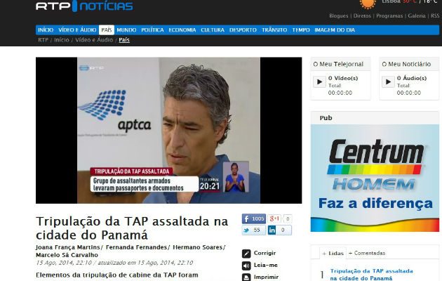 Uno de los medios (www.rtp.pt) difundió un vídeo donde el portavoz de la compañía aérea explica lo ocurrido con los tripulantes de TAP, quienes venían de Bogotá, Colombia, para cumplir con una escala en Panamá.