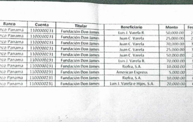 El periódico de Estados Unidos Diario de las Américas publicó hoy los cheques y documentos de los depósitos realizados por la Fundación Don James a nombre del candidato presidencial del panameñismo Juan Carlos Varela en varios bancos de Panamá.