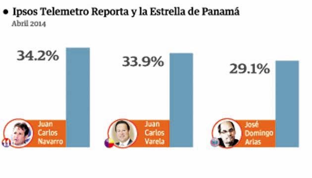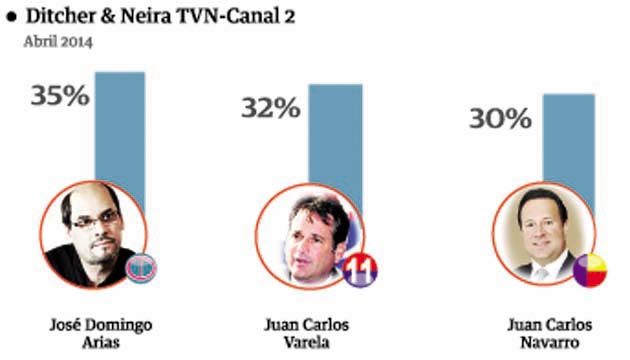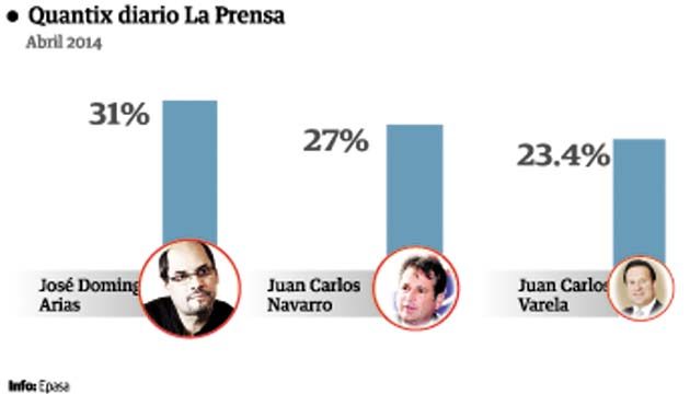 En tres de las cuatro encuestas, el favorito en la intención de voto fue el candidato de Cambio Democrático (CD) y el Molirena, José Domingo Arias, mientras que en una aventajó Juan Carlos Navarro, del Partido Revolucionario Democrático (PRD).