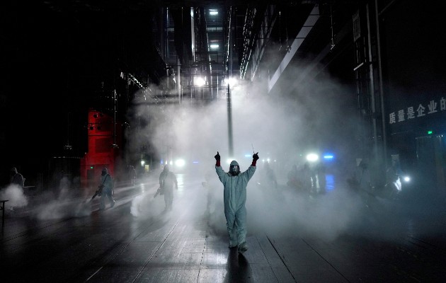Rumores desenfrenados dan un sentido de control en tiempos inciertos, dicen expertos. Desinfectando un teatro en Wuhan, China. Foto / Aly Song/Reuters.