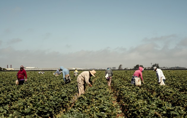 Se permite a los trabajadoras de granjas de EE.UU. salir pese a órdenes de resguardo. Un campo de fresas en California. Foto / Carlos Chavarría para The New York Times.