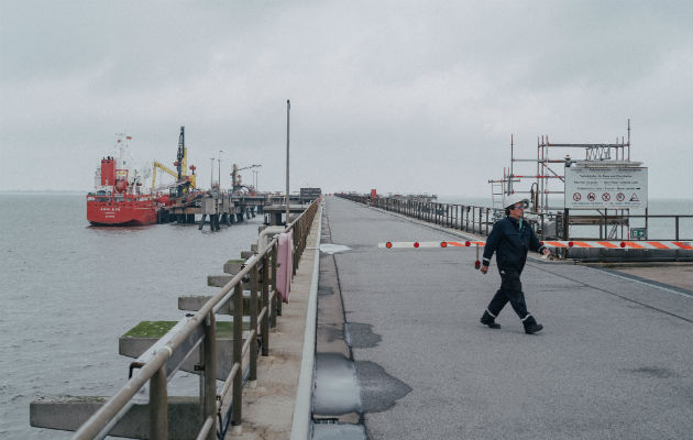 Un muelle usado por una planta química podría convertirse en sede de la primera terminal de GNL de Alemania. Foto/ Nanna Heitmann.