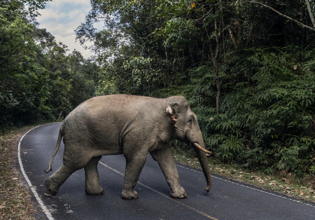 Con pocos autos presentes, los elefantes pasean por las carreteras, masticando el follaje sin necesidad de replegarse a los peligrosos rincones del bosque.