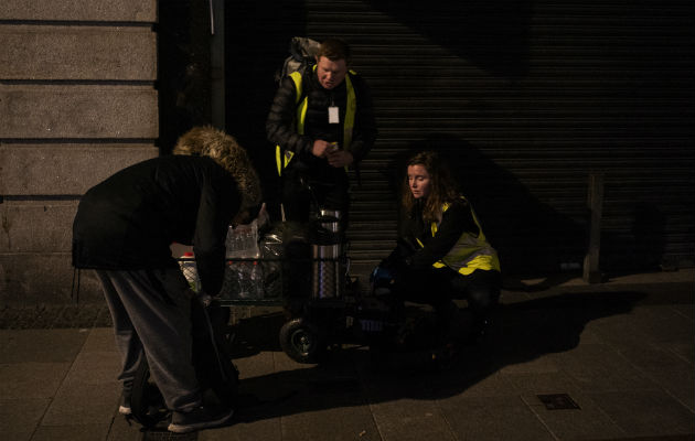 Elevadas rentas y pocas protecciones a inquilinos han dejado a miles sin hogar en Irlanda. Distribuyendo comida a un indigente. Foto / Paulo Nunes dos Santos para The New York Times.