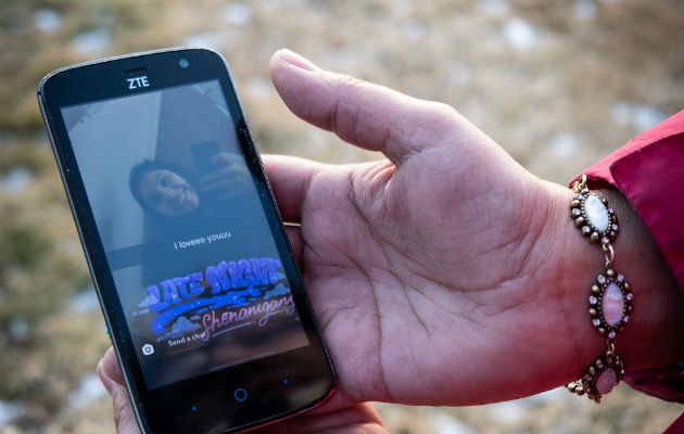 Jackie Big Hair con la última fotografía que le envió Selena, su hija de 16 años. Su cuerpo fue hallado el 20 de enero. Foto / Cristina Baussan para The New York Times.