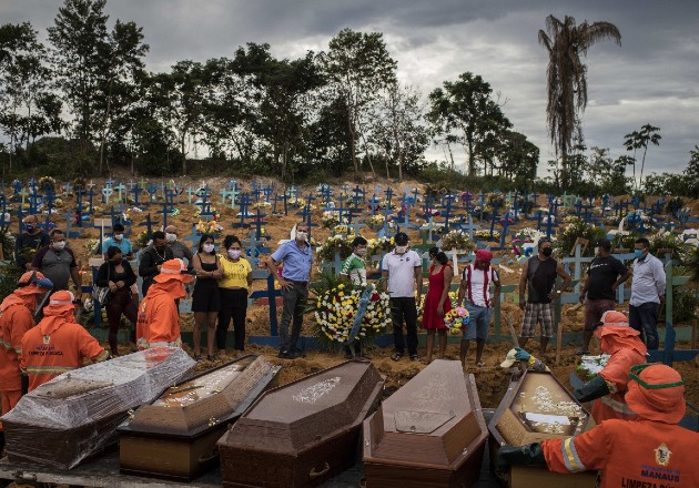 Pese a su clima tropical, el número de casos sigue creciendo en Brasil. El funeral de víctimas de coronavirus en un cementerio en Manaos. Foto / Raphael Alves/EPA, vía Shutterstock.