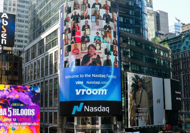 Vroom, que vende autos usados en línea, anunció hace poco su OPI en Nueva York. Foto / vía Nasdaq, Inc.