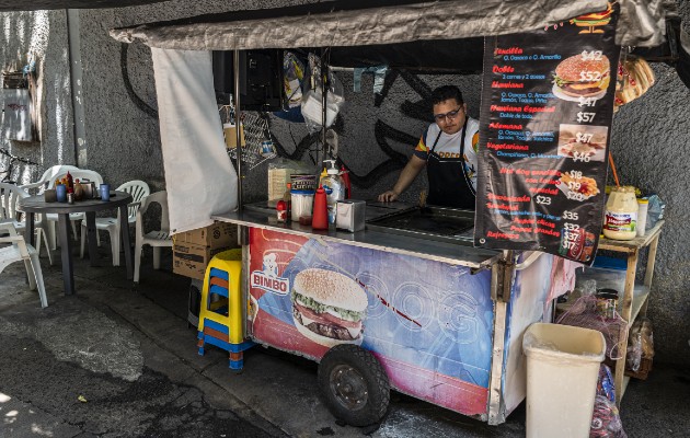 Sin embargo, Leonardo Meneses Prado seguía atendiendo su puesto de hamburguesas en su acera habitual en la Ciudad de México.