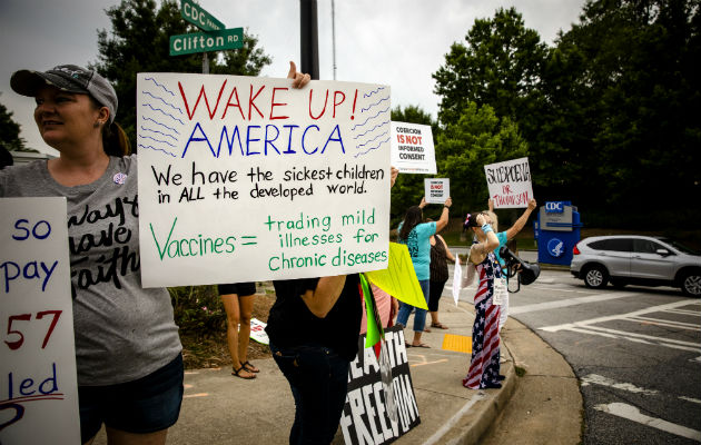 Casi todos los Estados de EU tiene al menos un grupo antivacunas. Una protesta en Atlanta. Foto/ Audra Melton para The New York Times.