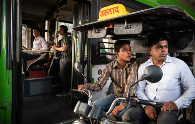 SmartE, cuyos aproximadamente mil mototaxis eléctricos conforman la flotilla más grande de esos vehículos, tiene un contrato con el sistema del metro de Delhi. La empresa de arranque les renta e-rickshaws de iones de litio a los conductores, quienes deben seguir rutas programadas por una computadora que evalúa la demanda.