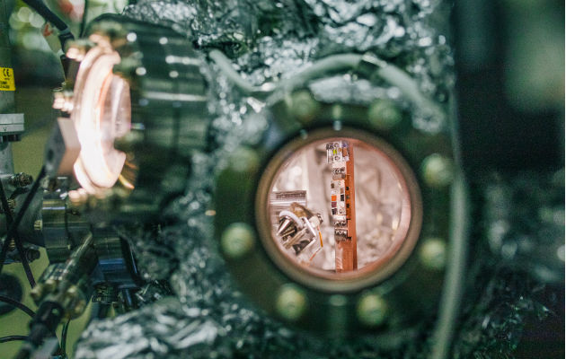 Una cámara que usa espectroscopia de rayos X para medir muestras, los pequeños cuadros de diferentes colores. Foto / Anastasiia Sapon para The New York Times.