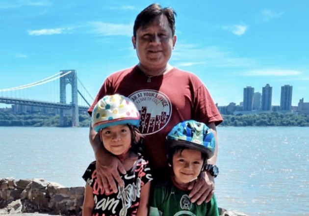 Martín Morales, de 39 años, quien murió de coronavirus, con dos de sus hijos.