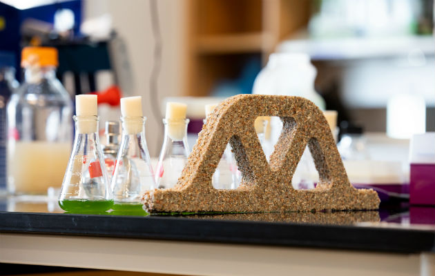 Un arco hecho de material de construcción viviente, que usa microbios para generar carbonato de calcio. Foto / Facultad de Ingeniería y Ciencias Aplicadas de la Universidad de Colorado.