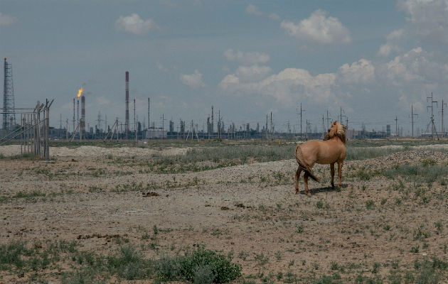 Caballos en el campo petrolero de Tengiz, que proporciona casi una cuarta parte del ingreso nacional de Kazajistán. Foto/ Nanna Heitmann para The New York Times.