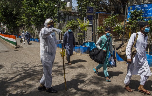 El Gobierno indio se ha apresurado a rastrear a cualquier persona del seminario de Tablighi y a poner a los congregantes en cuarentena. Oficiales de Policía han sellado la sede por todos sus lados.