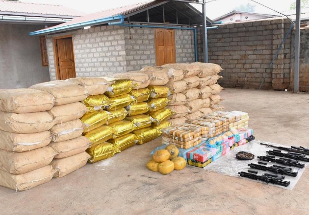 Drogas y armas con valor de 200 millones de dólares fueron incautadas hace poco. Foto / Policía de Myanmar, vía Reuters.