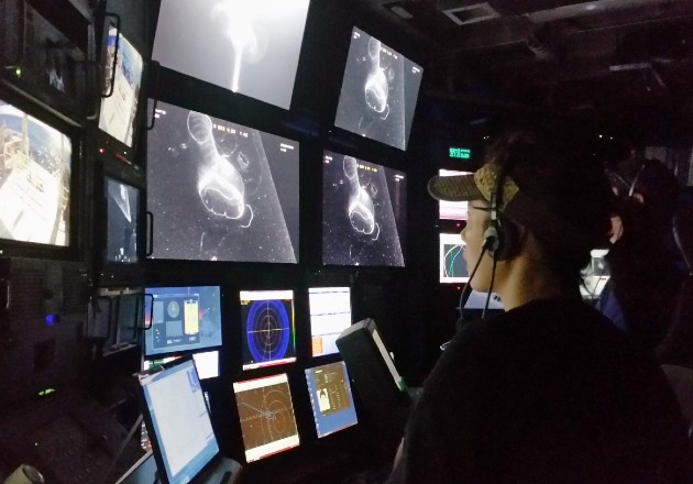 La sala de control del navío operado por control remoto, a bordo del barco de investigación. Foto / Kim Reisenbichler/Instituto de Investigación del Acuario de la bahía de Monterey.