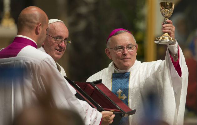 El Arzobispo Charles Chaput, de Filadelfia (der.), crítico de Francisco, se jubilará sin ser nombrado Cardenal. Foto/ Cj Gunther/EPA, vÍa Shutterstock.