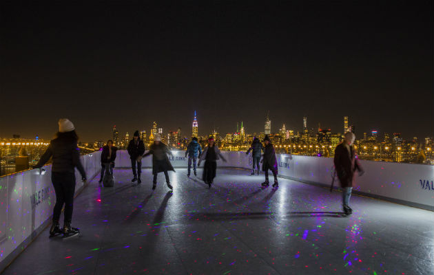 Era una escena invernal encantadora. En la azotea del hotel William Vale en la ciudad de Nueva York, personas abrigadas patinaban en una pista. Algunas caían; otras jugaban carreras.