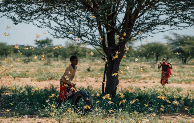 Kenia está combatiendo su peor brote de langostas del desierto en 70 años y la invasión se ha extendido a lo largo de gran parte del este del continente y el Cuerno de África, devastando pasturas y cultivos en Somalia y Etiopía e incursionando en Sudán del Sur, Djibouti, Uganda y Tanzania.