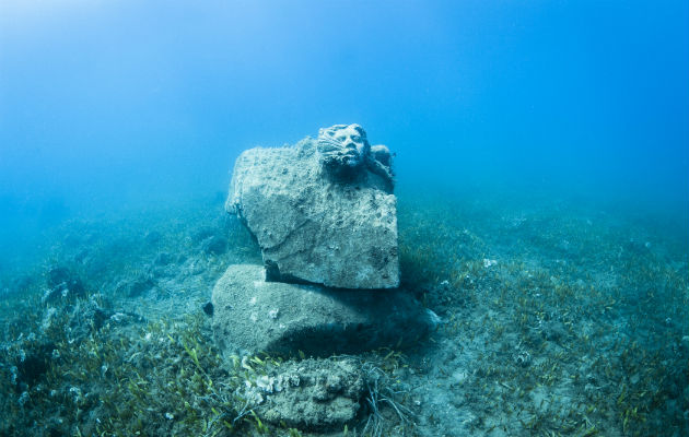 Unos 8 metros bajo la superficie, bancos de peces visitaban un museo de cuatro losas de mármol, extraídas de la cantera preferida de Miguel Ángel y talladas por aclamados artistas.