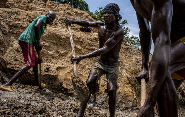 Trabajadores ganan 3 dólares diarios por extraer diamantes de minas en la República Centroafricana. Foto/ Ashley Gilbertson para The New York Times.