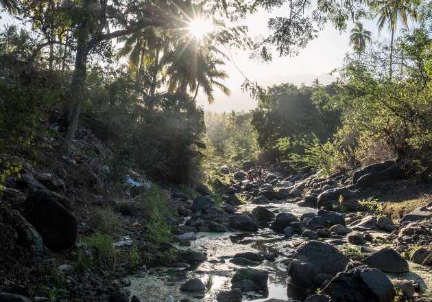 Desde los años 50, la isla ha estado desmontando bosques para dar paso a tierras de cultivo y, en el proceso, trastocó un delicado ecosistema. Con tantos árboles y plantas talados, el agua que normalmente recolectarían e iría de vuelta a la tierra y los ríos está desapareciendo. Las familias ahora luchan por satisfacer sus necesidades domésticas, y los agricultores encuentran cada vez más difícil irrigar sus campos.