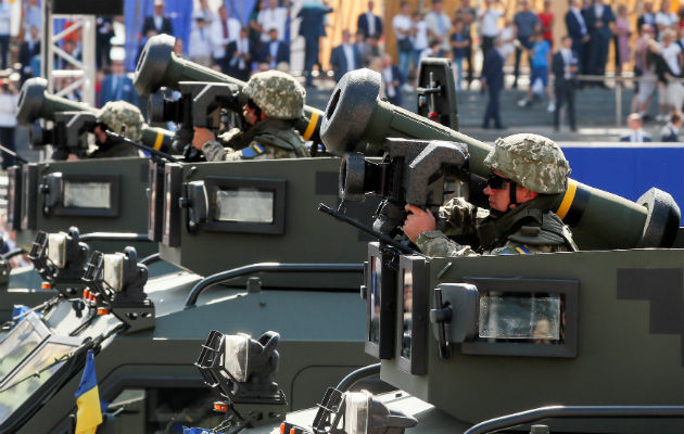 Soldados ucranianos con lanzamisiles antitanques Javelin estadounidenses durante un desfile militar en Kiev en 2018. Foto/ Gleb Garanich/Reuters.