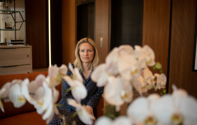 Kathryn Murdoch está sentada en sus oficinas en la ciudad de Nueva York, hablando sobre cambio climático y democracia.