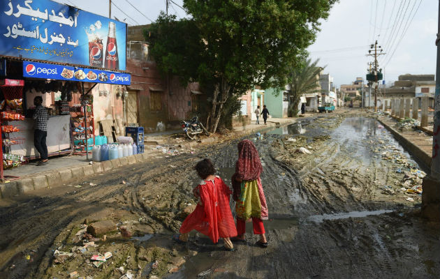 Lluvias intensas y drenaje obstruido de basura causaron inundaciones en calles de Karachi en agosto. La Ciudad ha sido calificada como una de las menos habitables. Foto/ Rizwan Tabassum/Agence France-Presse — Getty Images.