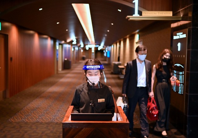 Japón ha lanzado una app de rastreo de contactos y aconseja evitar aglomeraciones. Un cine en Tokio en junio. Foto / Charly Triballeau/Agence France-Presse — Getty Images.