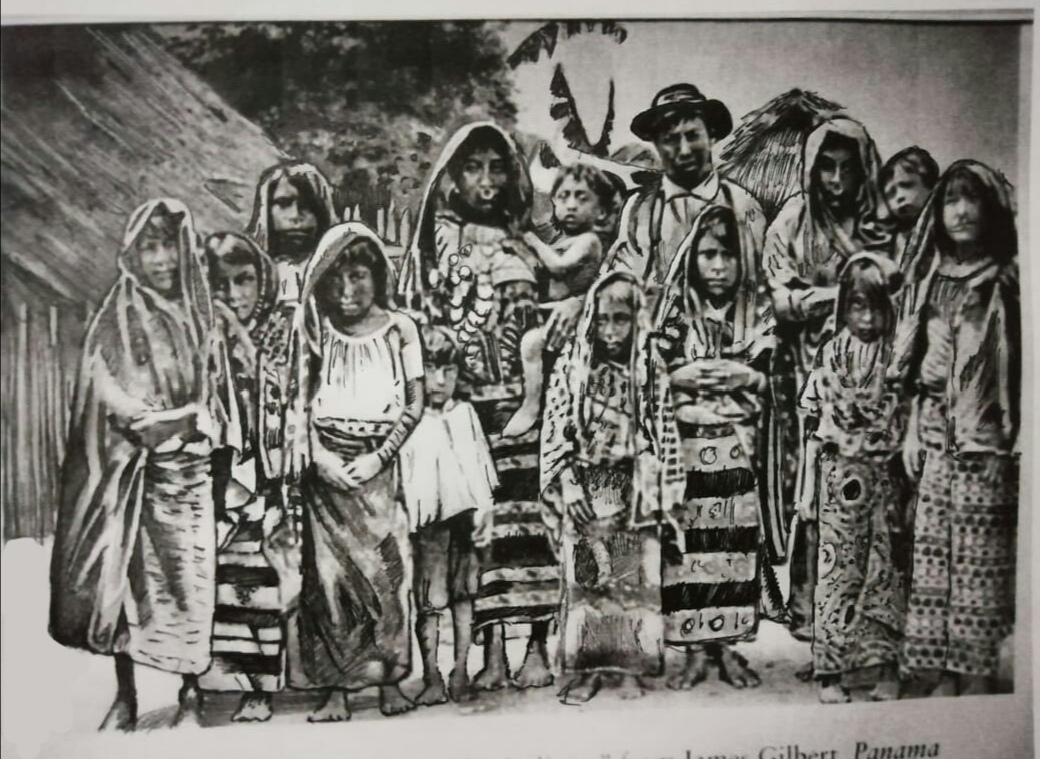 Foto de mediados de 1880, en la que se observa al primer cacique de la comarca Tulenega, Inanaginya, junto a un grupo de gunas. Foto: Cortesía del autor.