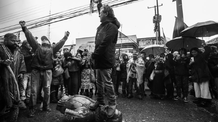La muchedumbre, está llena de rabia, miedo, y su forma de protestar es destruyendo lo que piensa fue construido por los que tienen la culpa de lo que está pasando.