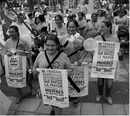 Una parte del trabajo reproductivo se realiza sobre la base de los trabajadores domésticos asalariados. Protesta reivindicativa por trabajadoras domésticas en Asunción, Paraguay. Foto: EFE.