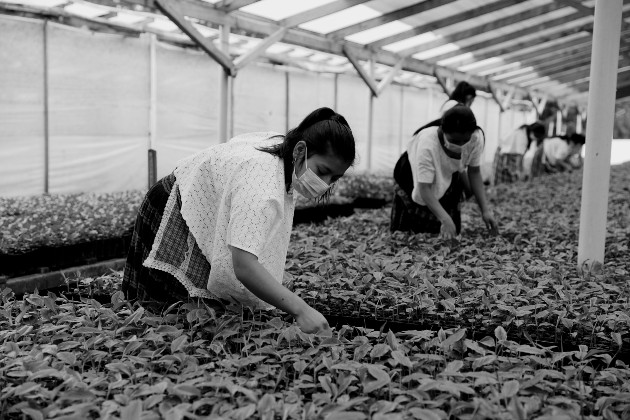 Mujeres cooperativistas de Guatemala, de comunidades campesinas, aplican prácticas agroforestales en sus cultivos, para enfrentar el cambio climático y la sequía, según informes de la FAO. Foto: EFE.